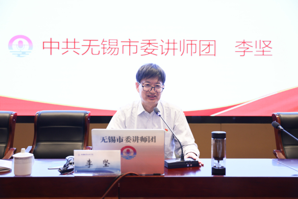 为扎实推进党纪学习教育,4月26日下午,学校在厚德楼一楼报告厅举办党纪学习教育首场专题辅导报告暨党委理论学习中心组(扩大)学习会,无锡市委讲师团三级调研员李坚受邀作专题辅导报告。党纪学习教育专题读书班全体成员、党委理论学习中心组全体成员、全体党员中层干部、学校纪委委员、二级学院纪检委员等参加学习,报告会由学校党委书记龚方红主持。