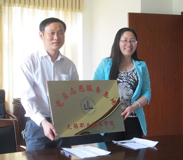 校组织部部长杨雪琴与社区居委会主任邵国丰共同为“乐鱼注册_乐鱼(中国)党员志愿服务基地”揭牌