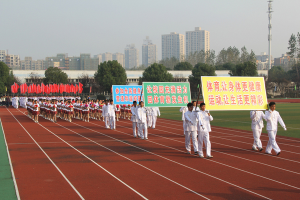 在庄严的升国旗仪式后,副校长华坚代表组委会致开幕词,全面回顾了我校过去一年开展阳光体育活动所取得的成果,要求全体裁判员严格执法、保证赛事公平,勉励运动员们努力拼搏、赛出风格、赛出水平。华坚副校长指出,在过去的一年里,我校师生运动员奋力拼搏、力争上游,在诸多体育赛事上斩获奖项,曾获得江苏省第二十一届高校“校长杯”乒乓球赛高职高专组团体第五名、在全省第十八届运动会高校乙组田径比赛揽获2金1银、获省运会高校部跆拳道比赛金牌1枚和无锡市第十一届运动会健美操比赛高校组一等奖等优异成绩。