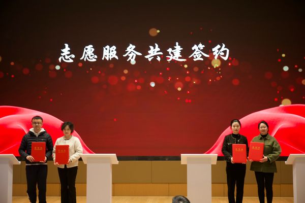 为深入学习宣传贯彻党的二十大精神和习近平总书记关于学雷锋志愿服务工作的重要指示精神,推进志愿服务品牌化制度化常态化,3月19日下午,我校在综合楼一楼报告厅举办第二届“蠡溪行动”志愿服务文化节暨志愿服务共建签约仪式,副校长强伟纲、党委宣传部部长周春兰、党委学工处处长徐悦、校团委书记郑月圆、共建单位代表和150余名师生参加了本次活动。