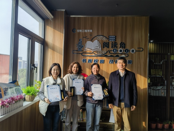 控制学院党总支副书记周嫄介绍了“未来工匠”阅读角建设情况,学院师生积极捐书捐报,目前已累计收到历史、科技、社会、心理等各个类别的书目百余本,商萍君、任耘汉等6位深度参与阅读角建设的师生代表获得了捐赠证书。