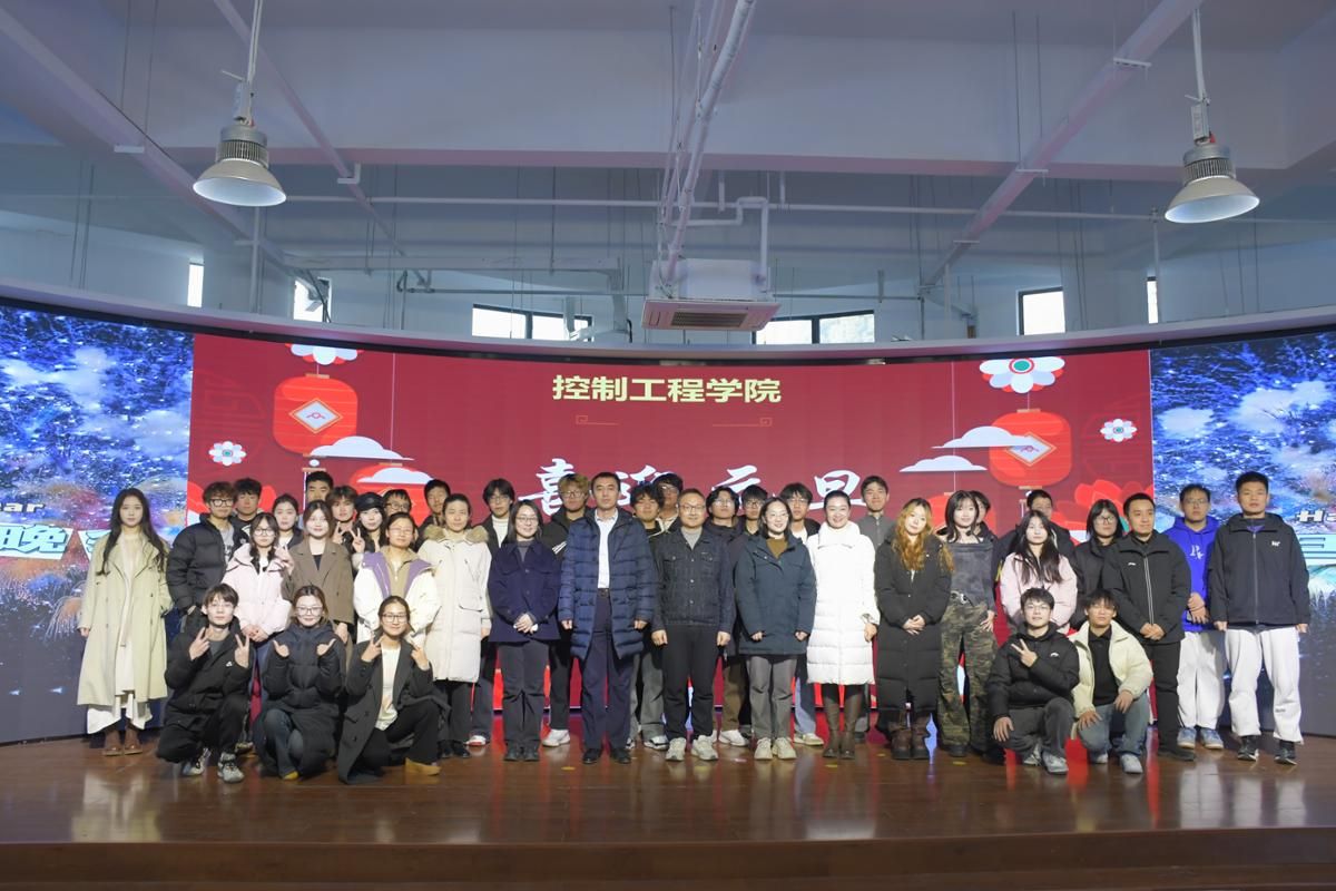 在活泼的开场舞《桃花朵朵开》后,控制工程学院党总支副书记周嫄致词,她勉励同学们在新的一年,与“智”者有约,与学院高质量发展同行,不懈奋斗,不负韶华,书写青春新篇章。随后,联欢会正式拉开帷幕,舞蹈、歌曲、小品等形式多样、内容丰富的精彩表演,赢得了同学们的阵阵掌声。现场还通过新年知识问答和趣味互动环节,弘扬中华优秀传统文化。在联欢会尾声,主持人邀请全场师生合唱《我们的明天》和《在你的身边》,同学们打开闪光灯,将现场氛围推向高潮。联欢会后,师生们合影留念,为活动画上圆满的句号。
