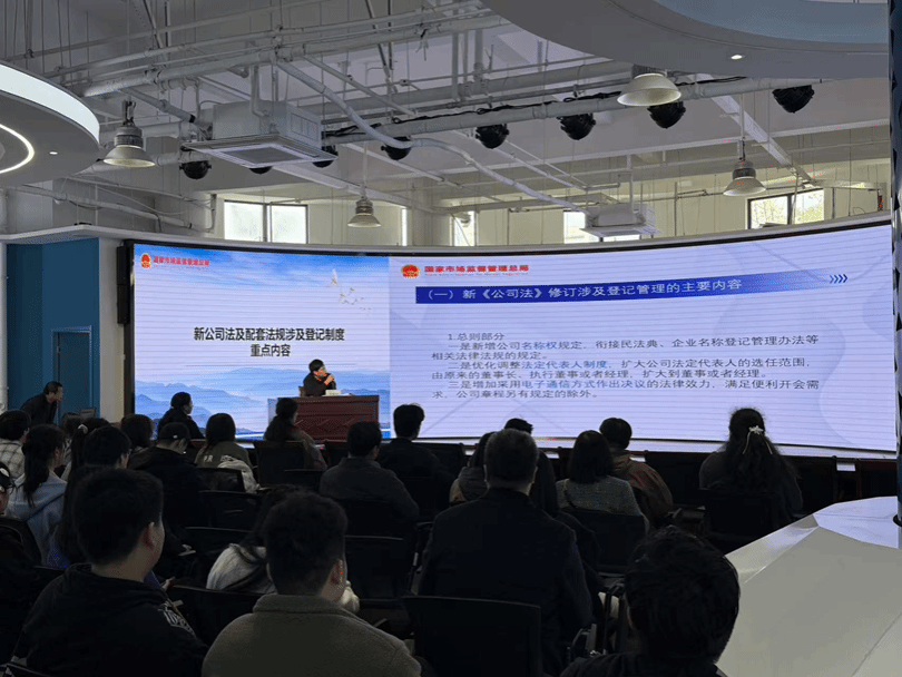 袁敏锋重点解读了新《公司法》下,公司的登记管理制度、设立退出制度、乐鱼注册_乐鱼(中国)设置、注册资本的限期认缴制度等,他凭借丰富的实践经验和扎实的专业知识,使在场师生对新政策下公司治理结构以及相关法律责任等方面有了更清晰的认知。