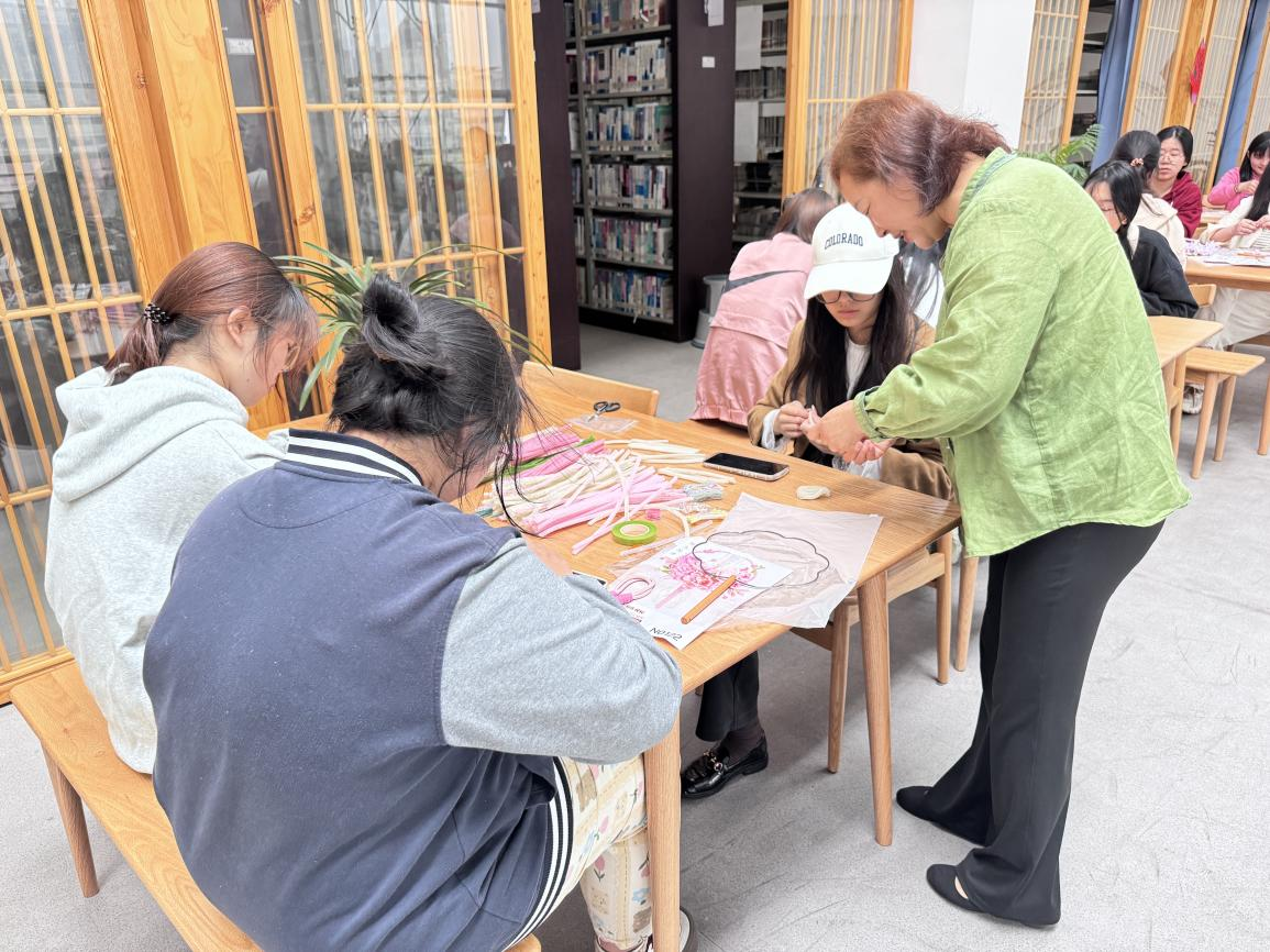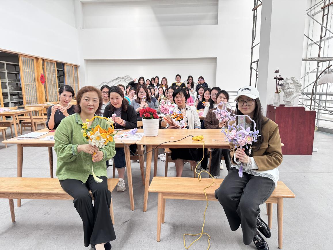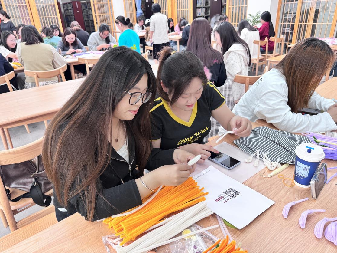简单的开幕式后,“悦享她力量”手作疗愈所第一期活动——扭扭棒团扇制作正式拉开帷幕,分院关工委副主任王继红老师介绍了团扇的历史和文化背景。团扇,又称宫扇、纨扇,是中国汉族的传统工艺品及艺术品,具有团圆、友善、吉祥如意的美好寓意,而扭扭棒团扇既保留了手工花朵的自然韵味,又赋予了团扇新的生命。在王继红老师的悉心指导下,大家充分发挥想象力和创造力,通过弯折、缠绕,将一根根扭扭棒巧妙地编织成美丽的花朵。过程中,大家互相交流心得,分享制作的喜悦,现场洋溢着欢声笑语。