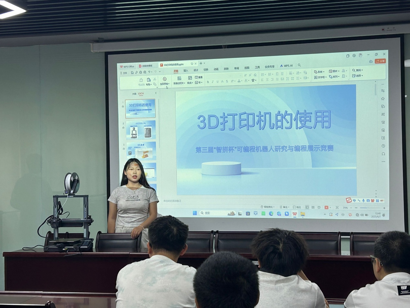 活动开场,协会同学将3D打印机作为重点讲解对象。他们手持精心制作的PPT,配合实物操作,从3D打印机开机时机械臂的自检动作讲起,详细拆解基础的操作流程。“打印平台调平是关键步骤,误差要控制在0.1毫米以内,否则打印件容易翘边。”张佳音边说边用专业工具进行演示,随后又深入讲解打印温度、填充密度等参数对成品质量的影响。现场的同学们聚精会神,有的凑近机器仔细观察,当看到数字模型从喷头中层层堆叠,逐渐变成一个立体的小零件时,惊叹声此起彼伏,不少同学还掏出手机拍摄,想要将这份科技的奇妙永久留存。