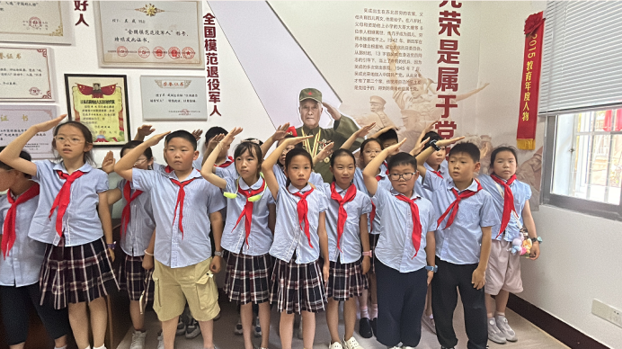 实践团成员将连日红色理论学习的积淀,转化为一系列深情而坚定的爱国实践。7月8日清晨,吴成革命教育基地迎来了20余名小学生。实践团成员们用生动的话语,将珍藏信件背后的红色故事娓娓道来。孩子们围聚聆听,眼神中闪烁着好奇与崇敬的光芒——红色精神,在这一刻悄然传递。