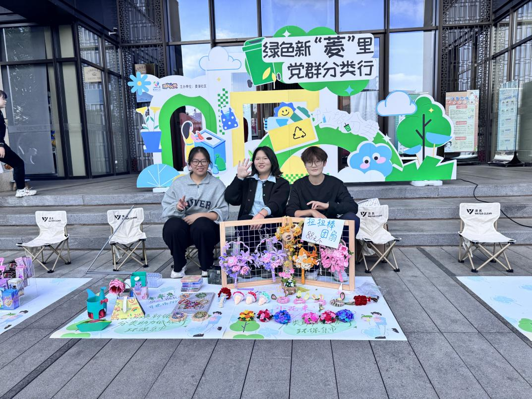 市集交易区人头攒动,财经学院“悦享TA力量”手作疗愈所的同学们精心布置摊位,带来的手工作品更是成为全场焦点,手工折纸、手串DIY、扭扭棒花束和团扇等吸引了大量小朋友驻足选购。互动体验中,同学们更是现场指导小顾客自己动手制作,一边耐心讲解制作步骤,一边分享手工作品制作背后的环保理念。同时,学生志愿者更是在活动中化身“环保使者”,不仅向社区居民和儿童发放环保知识小手册、垃圾分类宣传页,还倡导大家从日常生活入手,从小事做起,让家园更加美丽。在跳蚤市场的熙攘中,大家不仅获得了宝贵的生活体验,更在买卖间深刻领悟了低碳环保、勤俭节约的生活理念。