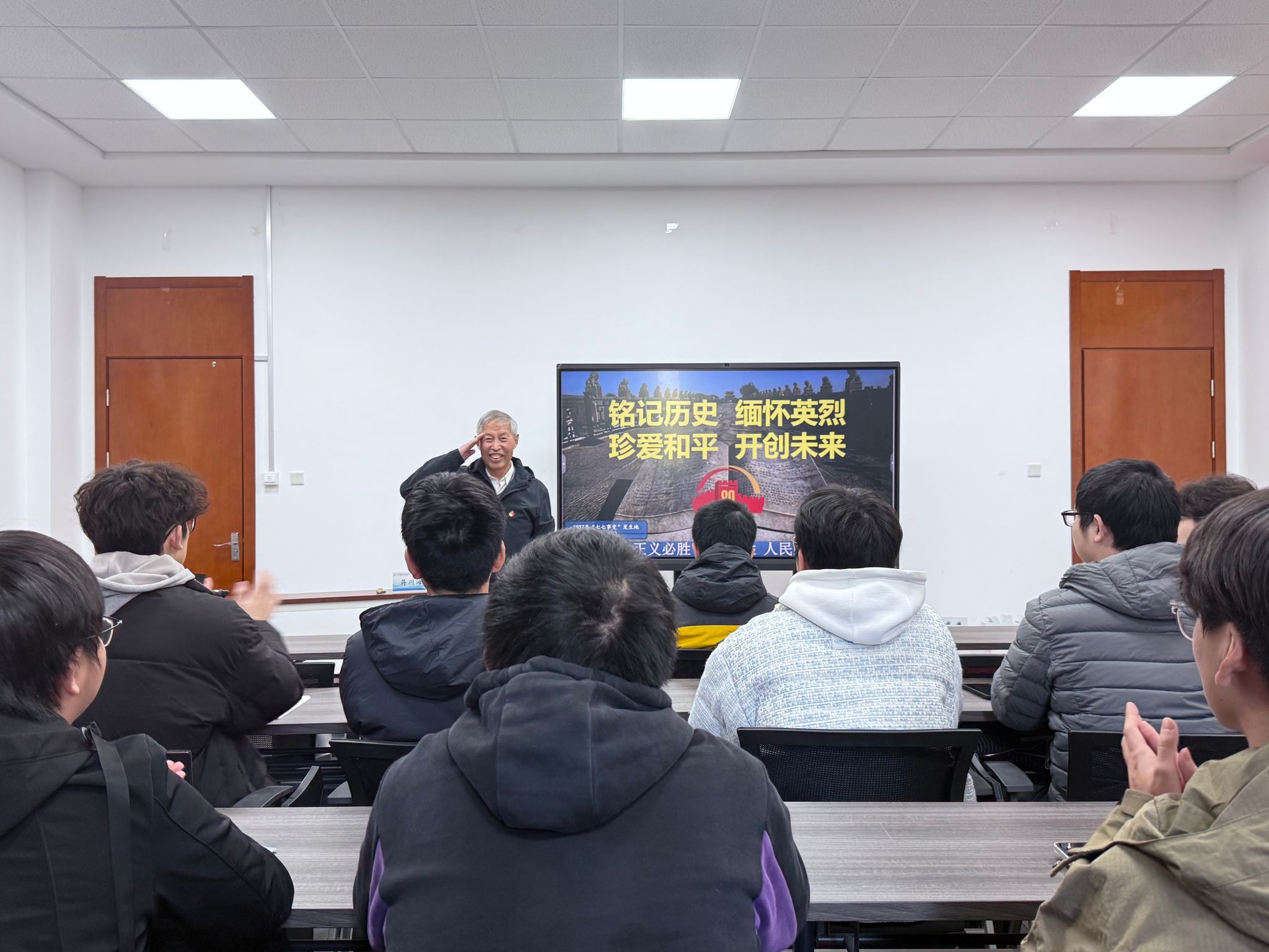 为深入学习宣传贯彻党的二十届四中全会精神,铸牢中华民族共同体意识,引导各民族青年学子感悟思想伟力、凝聚奋进力量,11月18日,机械工程学院邀请全国关心下一代工作先进工作者、无锡市关工委宣讲团成员蒋川海同志,以“铭记历史,吾辈自强”为主题讲授纪念抗日战争胜利80周年专题党课,近40名青年团员参与学习。