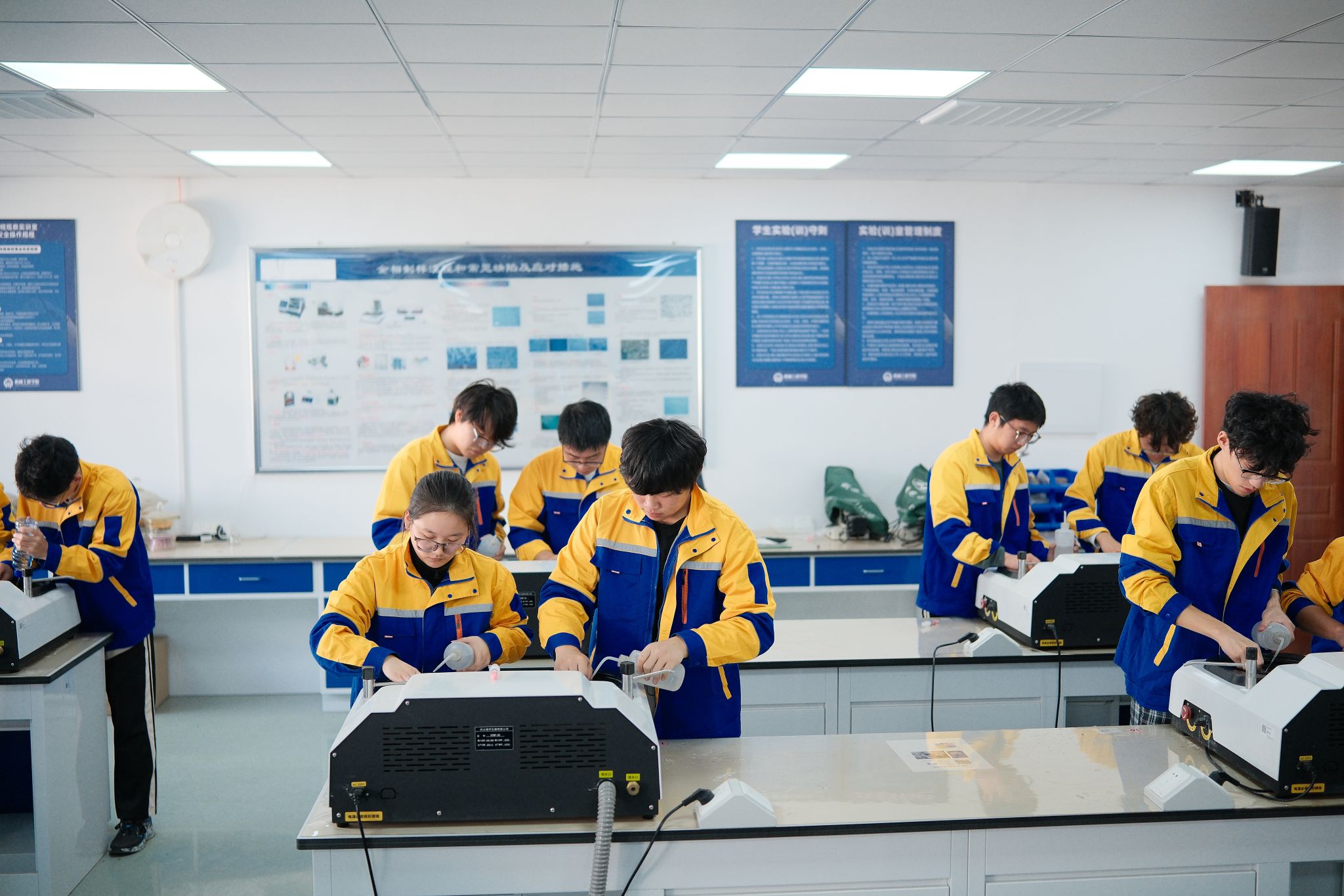 同日,金相技能大赛在工业中心A-S410拉开帷幕。比赛分设“金相技能”与“金相分析”两个赛道,分别面向不同年级学生。在技能赛道中,选手需完成试样磨制、抛光、侵蚀与显微观察等一系列精细操作;分析赛道则在此基础上增加材料专业理论答题环节,综合考察学生的理论功底与实践能力。显微镜前,同学们认真调试、细致观察,在微观世界中探寻材料科学的奥秘。。