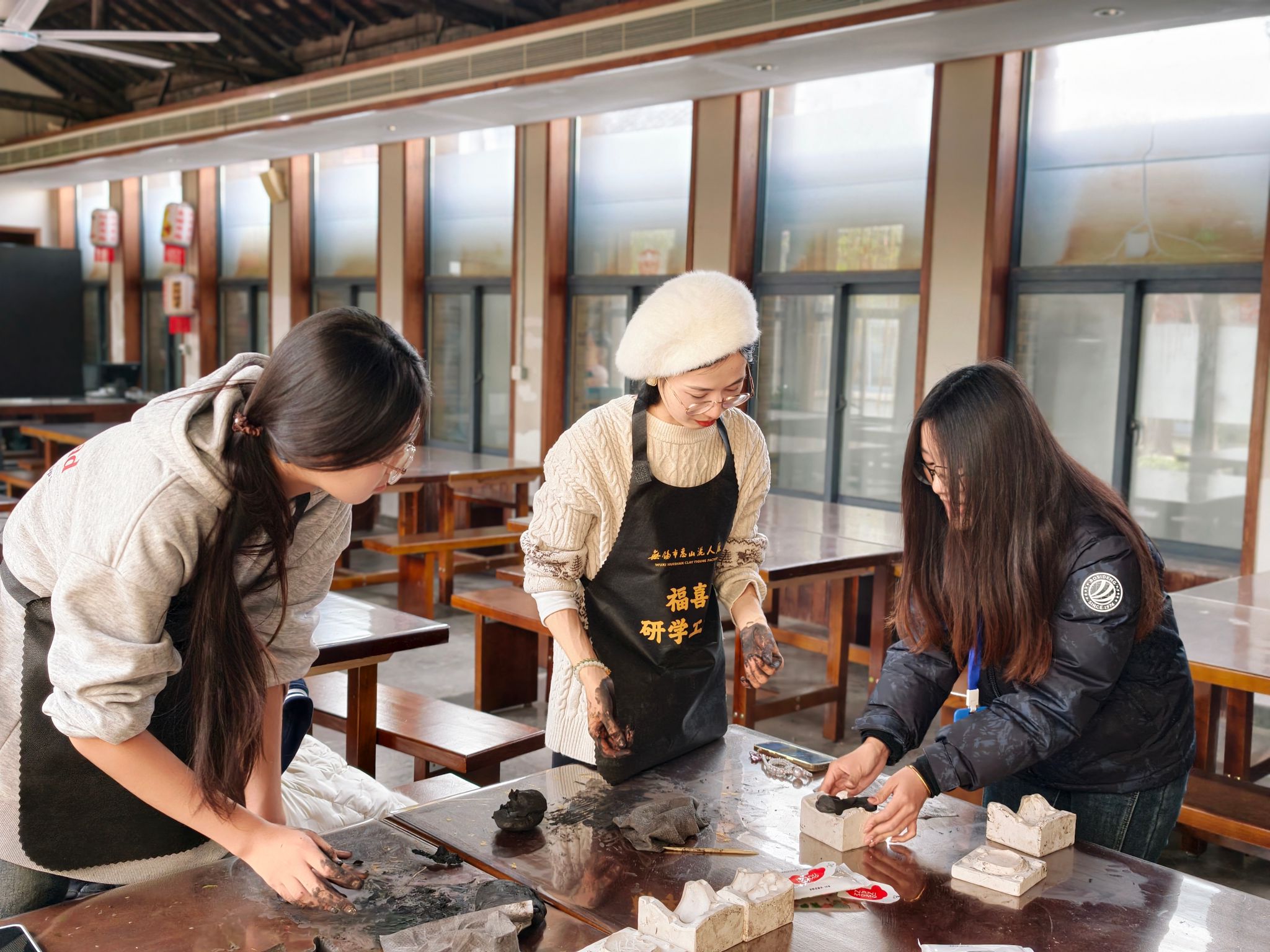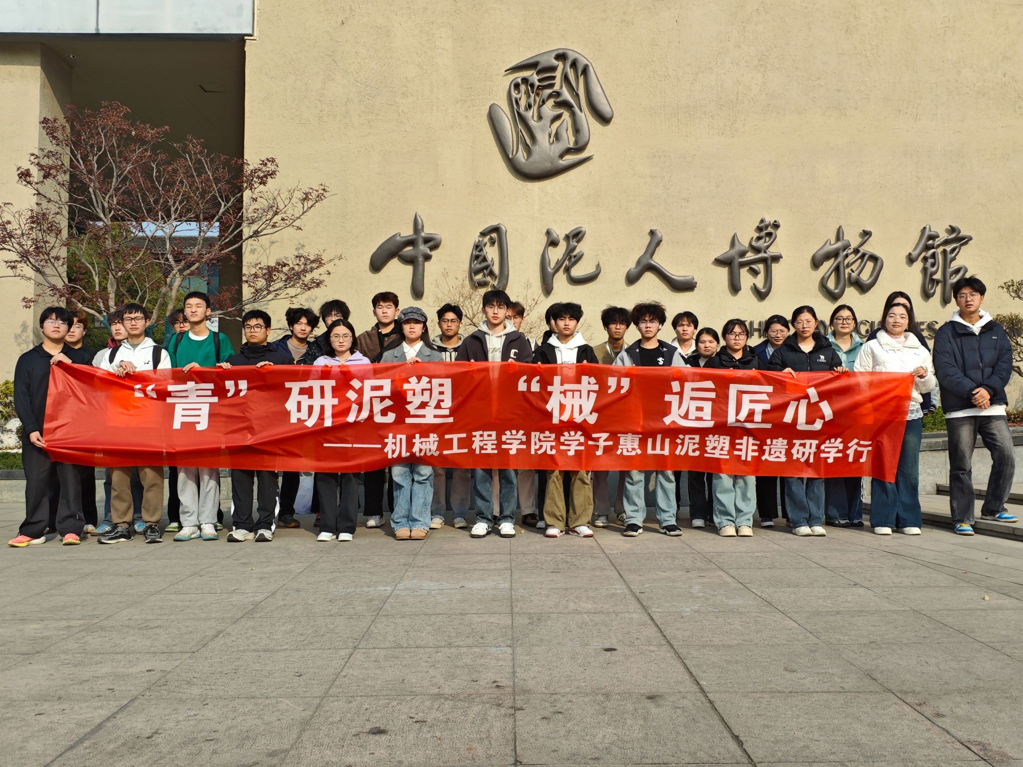 作为无锡本土标志性非物质文化遗产,惠山泥塑千百年传承的手工塑形、精准修坯技艺,与机械专业追求的精密制造、工艺创新理念一脉相承。学院以地域非遗为思政教育与专业认知的鲜活载体,前期精心对接非遗场馆与传承人,定制融合机械专业特色的研学路线,从讲解内容的打磨到手工体验的设计,皆紧扣“匠心共通”核心,让非遗研学不止于“看”,更在于“悟”。