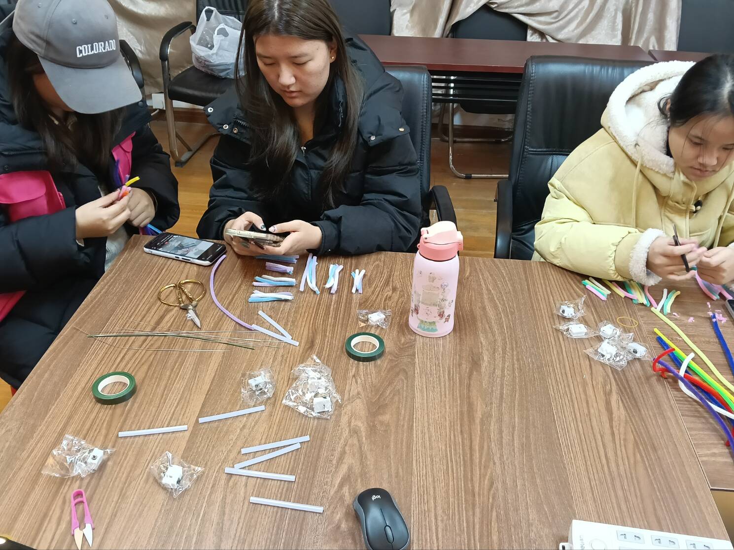 创作过程中,同学们相互交流技巧、分享灵感,不时传来欢声笑语。一根根普通的扭扭棒在灵巧的手中逐渐蜕变,成为一束束形态各异、色彩绚丽的 “烟花”。有的同学为作品搭配了精致的挂绳,计划作为新年礼物赠予亲友;有的则精心设计了底座,让 “烟花” 得以长久摆放,定格这份手工温度。现场不仅是创意实践的乐园,更成为同学们增进友谊、共盼新年的温馨空间。