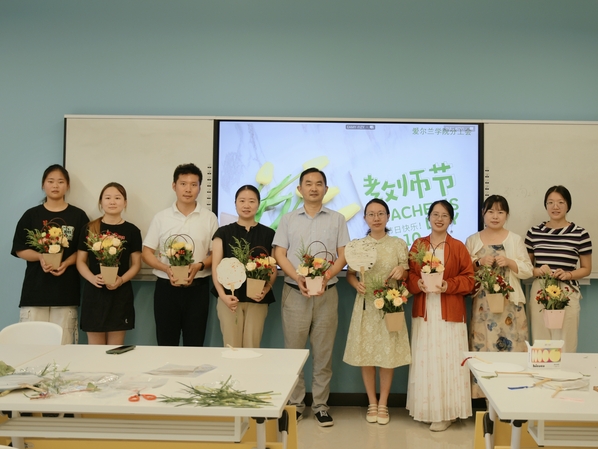 爱尔兰学院党总支书记李湘向学院全体教师表达了节日的祝福,向辛勤耕耘在一线的老师们致以最诚挚的慰问,并寄语“令公桃李满天下,何用堂前更种花”,作为新时代的教师,应时刻不忘照亮学生前行之路,应心怀高远、无问东西,落实立德树人根本任务,做新时代“大先生”。