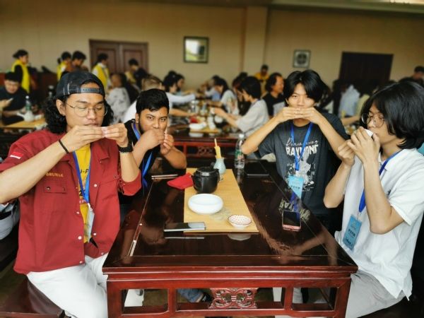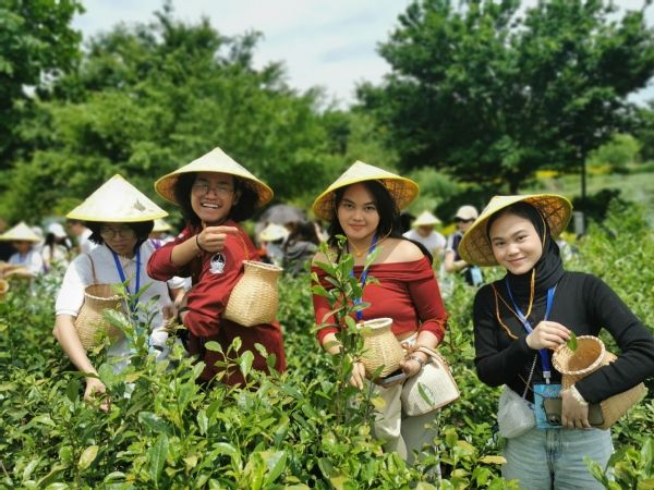 在为期两天的活动中,留学生们参观了句容现代农业展示馆、白沙标准化农田、生态智慧农场。大家现场体验了菌菇采摘制作及绿色种植,沉浸式感受中国式现代化的生动实践。在白沙村示范田举办的“星光夜读会·尚农”活动中,中外学生现场表演了诗歌朗诵,参与了书海漫游趣味问答。在江苏茶博园体验了采茶、制茶、品茶的全过程。