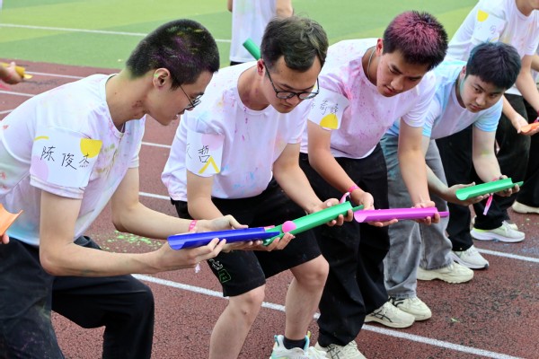 活动伊始,学院党总支副书记朱琳致开幕词,她激励同学们积极参与活动,通过运动释放压力,挑战自我极限,尽情享受青春的快乐。随后,辅导员陈曦强调了活动安全的重要性,确保活动能够顺利进行。经过热身运动,阳光彩虹跑的主题活动正式进入团体游戏环节。精心设计的“桃花朵朵开”、“运气球”、“高山流水”以及“一圈到底”等一系列趣味恒生的游戏,使得现场洋溢着青春的活力和欢乐的氛围。同学们在游戏中相互扶持,共同拼搏,充分展现了阳光般的积极态度和彩虹般的团队精神。