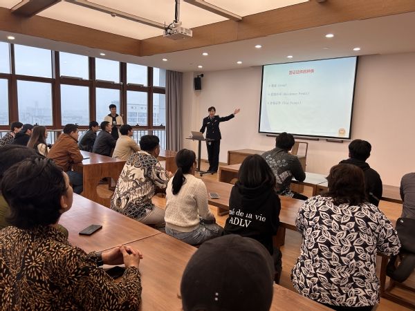 出入境管理支队原玉娟警官分别从中国法律、在锡外国人现状、涉外案件分析、外国人宗教活动管理规定四个部分开展了专门的法律法规宣讲,并与在场学生积极互动交流,详细解答了学生的疑问。原警官深入浅出地讲解文化安全和科技安全等国家安全的重要意义,以真实、鲜活的案例教育留学生遵守中国法律的必要性,引导涉外工作人员树牢总体国家安全观,将国家安全意识转化为自觉行动,帮助留学生学好知识、读懂中国。