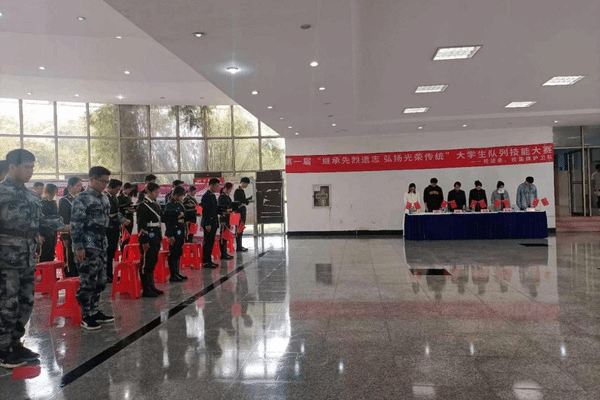为了缅怀和致敬革命先烈,以红色基因筑牢广大学生的“中国红”信仰,用青春臂膀扛起保卫国家安全职责,清明节前夕,学校首届“继承先烈遗志 发扬光荣传统”大学生队列技能大赛在教三大厅鸣锣开赛。校团委书记郑月圆、校人民武装部副部长徐锋等领导、老师和国旗护卫队全体学生80余人参加了此次比赛。
