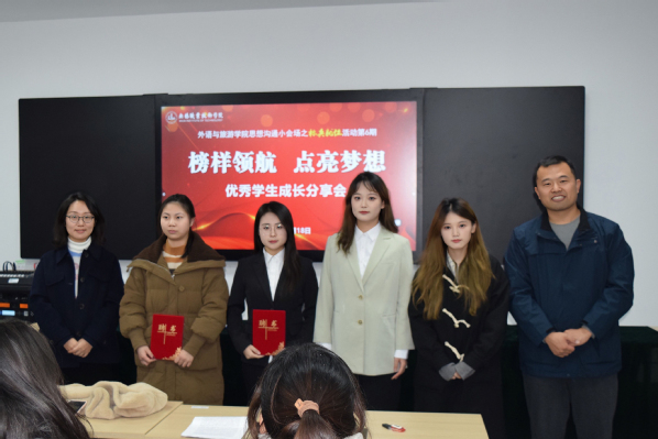 为进一步强化“一站式”学生社区学生参与度,充分发挥学生社区优秀学生的榜样引领作用,全面营造“自强不息、积极进取、奋勇拼搏”的校园励志成长氛围,12月18日下午,外语与旅游学院在国际交流中心308举办以“榜样领航、点亮梦想”优秀学生成长经验分享为主题的第六期标兵就位活动。2022-2023学年国家奖学金获得者杨鑫奕、崔静,国家励志奖学金获奖代表李鑫鑫、陆紫莹作经验分享,外语与旅游学院党总支副书记周嫄、辅导员以及23级学生代表参会。