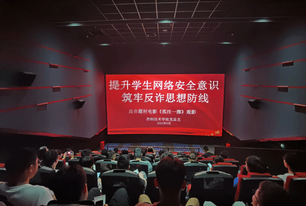 为深入贯彻习近平总书记对打击治理电信网络诈骗犯罪工作的重要指示精神,推进校园反诈宣传工作,进一步加强防范电信网络诈骗宣传教育,筑牢防范电信网络诈骗思想防线。控制技术学院党总支开展反诈观影活动,9月7日晚,控制技术学院教师党员、各班安全信息员、关工委老同志等四十余人集体观看反诈题材电影《孤注一掷》。