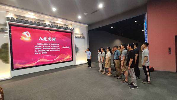 党员同志们在讲解员的带领下,通过一幅幅照片、一个个视频、一件件实物,重温了中国尤其是苏南地区乡镇企业风雨兼程、星火燎原、勇立潮头的发展历程。在“踏尽千山万水 吃尽千辛万苦 说尽千言万语 历尽千难万险”的“四千四万”精神展示台前,党员同志们驻足良久,用心去体会“四千四万”精神丰富的内涵和背后的艰辛历程,无不惊叹于老一辈创业人的顽强拼搏和不懈努力的干事创业的精气神。党员同志们在党旗下重温入党誓词,一句句铿锵有力的誓言在馆内回荡,进一步坚定了党员同志的入党初心,强化了干事创业的职责使命。