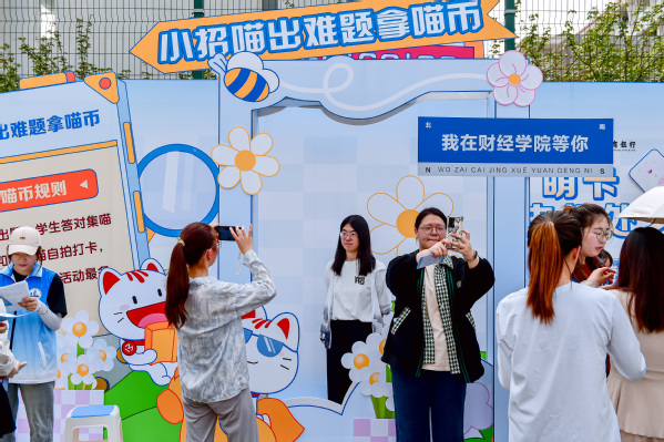 活动现场以“金融知识”为主题,设置了金融知识能量站“一锤定音”游戏,财思泉涌“投投乐”游戏、金融词汇大挑战“娃娃机”游戏、金融知识问答“自拍打卡”等多项趣味游园闯关小游戏。每位参与同学领取一本“闯关护照”,每通过一关即可获得闯关印章,凭获得的印章兑换相应礼品。
