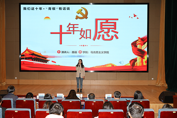 本次比赛吸引了马克思主义学院12位年轻教师参加,他们分别以《坚持立德树人、奋进新时代》、《星光不问赶路人、时代不负奋斗者》、《青春逢盛世、青年勇担当》、《十年如愿》、《芳华待灼、砥砺深耕》、《我眼中的中国十年》、《十年铿锵共命运》、《信仰的力量》、《我的十年、走向思政的十年》等为题,或深情讲述自己和新时代共同成长、确立信仰的故事,或描绘党的十八大以来党和国家事业发展的壮阔图景,或立足生态文明、创新发展、人类命运共同体等理念阐释自己对于党的创新理论的深刻理解,角度虽有不同,但都立意高远,表达了年轻一代思政课教师勇担使命,不负时代的决心,展现了奋勇争先、青春激昂的青年风采。比赛现场精彩纷呈,评委和听众们被选手们的演讲深深打动。最终,路遥和王英慧老师荣获一等奖。