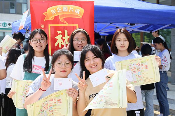 其中,习近平新时代中国特色社会主义思想青年学社将党史印在明信片上,通过生动的图片讲述党史故事,将党史知识宣讲与社团巡礼相结合,形式新颖、内容丰富,吸引了广大学生驻足学习、点赞,更多元化方式地将育人工作深入学生生活之中。