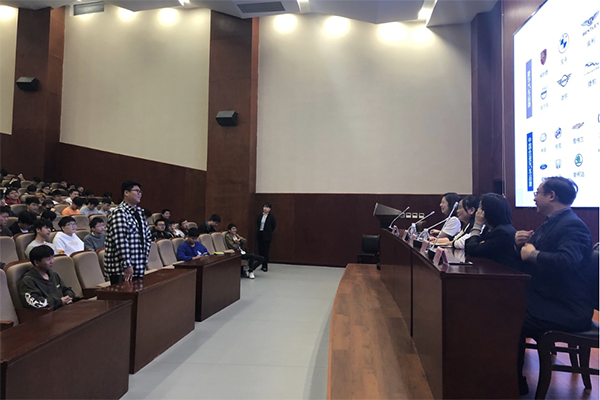 永达集团人力资源总监张陈华对集团规模及业务进行了介绍,并对实习生在企业的生活、待遇及发展进行了宣讲。同学们积极互动,张陈华也针对同学们感兴趣的相关提问作了详细解答。