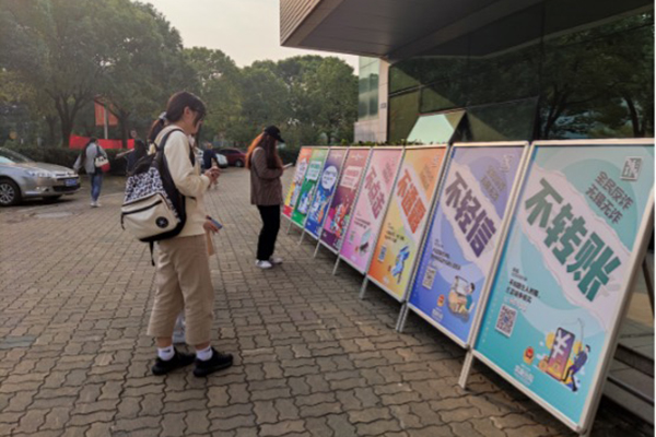 学校通过微信公众号、QQ 群、横幅、展板、视频等宣传形式,有效地提高了反诈宣传实效,让师生们更加全面地了解了诈骗类型和防范技巧,为校园筑起反诈防骗“防火墙”。