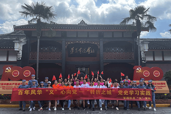 为赓续红色血脉、传承遵义精神,用党的奋斗历程和伟大实践激励青年大学生坚定理想信念、锤炼高尚品格,努力在自身的学习、工作中开拓创新、争创佳绩,将革命前辈用流血牺牲打下的江山守护好、发展好,做出无愧于先烈、无愧于人民的新业绩,7月6日,乐鱼注册_乐鱼(中国)党史学习实践团——管理红点“义”支队来到遵义会议会址,寻访“红楼”,在行走中感悟“转折之城”的精神力量。
