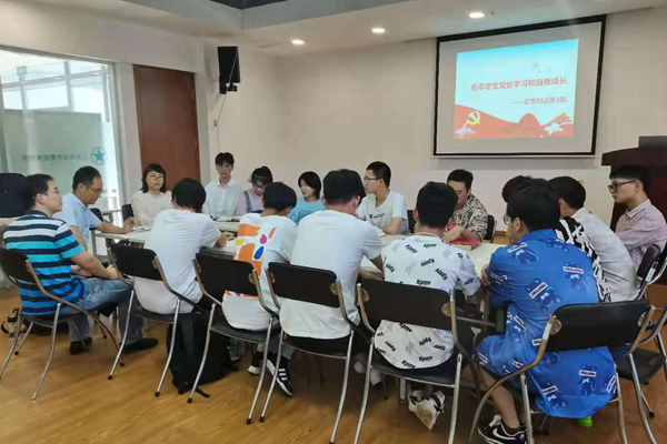 本次活动以师生观看视频《史上最牛创业团队》开始。短短两分钟的视频,却给现场所有人带来深深的震撼。师生们震撼于党的创立时的严酷危险的环境以及其后历经的艰难曲折,震撼于那个团队创造出的从13人到9000多万人、从一艘小船到一艘巨轮的伟大奇迹。马克思主义学院崔香芬老师结合视频,为大家梳理了中国共产党带领中国人民实现中华民族从站起来、富起来到强起来的历史逻辑、理论逻辑和实践逻辑,进一步阐释了中国共产党为什么能的必然规律。马克思主义学院阎秀芝老师则提出问题:青年学生在学习党史过程中有怎样的感想和触动?革命先辈和仁人志士那会恰同学少年、书生意气、挥斥方遒的行为事迹对今天的青年学生有什么启示?同学们踊跃发言。青年学社社员张浩然说:“对于为什么共产党初期的青年人如此奋进、不顾自我,我觉得除了文人风骨支撑外,更多的是理想主义者奉献社会的精神使然。”石进说:“作为新时代的新青年,我们要敢于担当、不断进步,在日后接过先辈手中旗帜,在发展中国、复兴民族的道路上勇敢前行。”嵇广辉说:“那个特定的年代,先辈们身上的不少信念,是我们无法想象的。今天的我们也应该放弃自私的心,为社会多做努力。党史的学习永无止境,我们应该带着问题去学习。”王晓琨说:“此次活动,老师的教诲和鼓励令我成长了许多,对自己以及未来有了更多的信心。我们青年要撸起袖子认真干,对学习、对生活付出加倍的努力!”