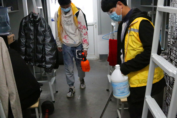 分院学生志愿者坚持“全覆盖、无死角、彻底清理”的原则,分组对学院学生居住的菊园、竹园、畅园、牡丹园335间宿舍进行卫生检查和防疫消杀,彻底杜绝病毒的滋生和蔓延。在活动过程中,青年志愿者们充分发挥宿舍思想育人主阵地作用,叮嘱同学们要严格按照学校疫情防控工作要求,做好宿舍卫生常态化清洁、通风、消毒工作,用钉钉子的精神抓好文明宿舍建设;树立健康意识,合理安排学习与生活作息,持续开展自我良好习惯养成教育。