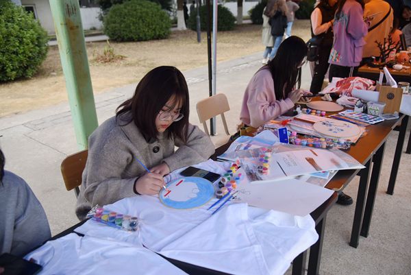 作为分院的文化展示平台,此次创意市集活动分为售卖区和体验区。售卖区中的创意作品由艺术与设计学院在校学生自行设计完成,有自制抱枕、手绘明信片、手绘衬衫、手绘圆扇、相框、灯具、杯垫、布袋、古装饰品、徽章、书夹、自制流沙瓶、陶器等作品近千件,样式繁多且物美价廉,同学们穿梭市集,或驻足欣赏,或啧啧称赞,十分热闹。体验区内,设计了手绘、涂鸦等现场互动环节,受到师生们的欢迎。