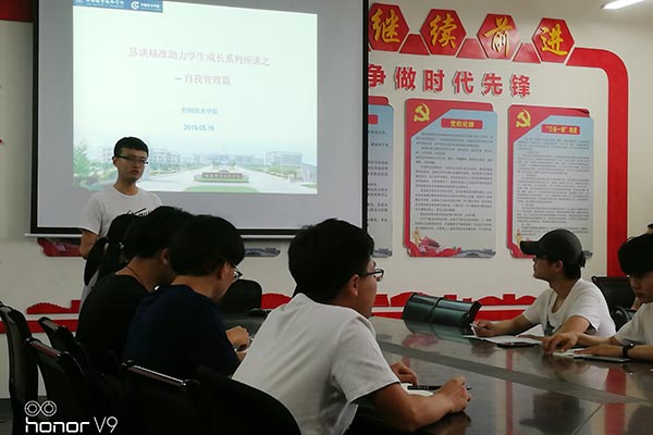 5月30日上午,控制技术学院“恳谈精准助力学生成长”系列恳谈会之自我管理篇在工业中心B-409举行,分院全体辅导员老师,电气21834班同学以及部分分院党校学员参与了恳谈会。