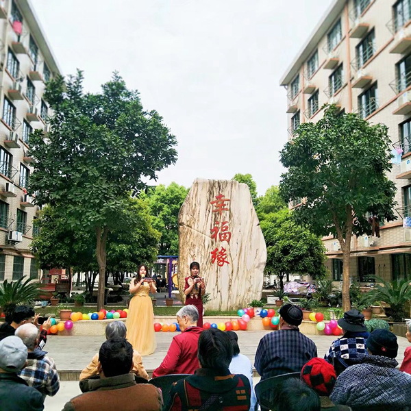 踏着春日旋律,志愿者们带着灿烂的微笑、真挚的问候走进扬名幸福颐养院。在干净整洁的庭院里,志愿者们为全体老人呈现了一场精彩的文艺汇演,《茉莉花》乐器独奏欢快悠扬,歌曲《爱》青春活泼,小品《笑满养老院》欢声笑语,老歌重唱满满回忆。志愿者们唯美的歌舞、动人的音乐、幽默的语言在让老人们幸福洋溢、开怀大笑。一张张快乐的笑脸,一幅幅和谐甜美的画面定格在了这浓浓春意中。