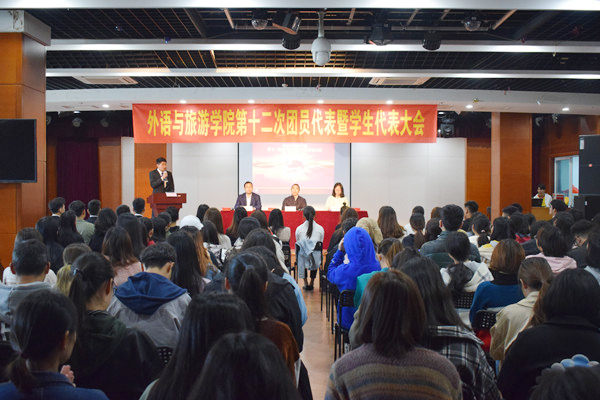 11月13日下午,外语与旅游学院第十二次团员代表暨学生代表大会在青春剧场隆重召开。外语与旅游学院党总支书记江铭、学院团总支负责老师及133名代表参加了大会。