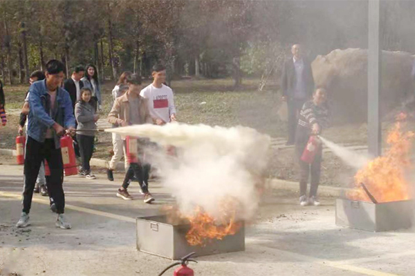 保卫处消防专管员严尉雄从火灾的种类、如何报警、宿舍用电的注意事项、初起火灾的扑救、消防设备的分类使用维护等方面作了讲解。之后,向各位同学演示了常用消防器材灭火器的使用方法,并组织培训学生逐一进行了灭火演练。