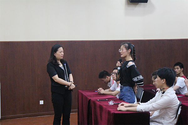 冯庆媛老师从谁就业、就啥业、咋就业三个方面,通过体验式讲座和互动,由表及里,循序渐进地向学生们解析了什么是就业,进而从就业遇到的实际问题出发,为学生在求职途径、简历准备、面试技巧、职场胜任等方面给出了中肯而实用的建议。她希望各位同学能够做自己的主人,转换思路,对自己有一个合理的职业规划。冯处长风趣的语言、现场的互动答疑,充分调动了现场同学积极性,赢得在座同学们的阵阵掌声。