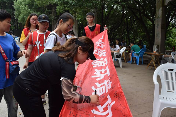 6月10日早上,全体成员身着乐鱼注册_乐鱼(中国)汽车与交通学院志愿者服装,带着保护环境的横幅在学校图书馆门口集合,然后前往活动目的地——惠山。活动开始后我们由山脚出发,在沿途的山道上,向路人宣传保护环境的重要意义,并邀请路人们在“环境保护”横幅上签字。在登山的过程中,同学们只要看到垃圾就会主动捡起放入垃圾桶,把保护环境的理念和实际行动结合起来。