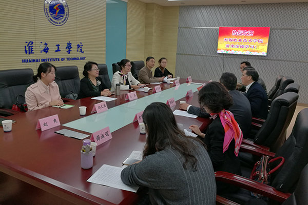 10月19日,财经学院柏景岚副院长、蒋宏成院长助理等一行6人赴淮海工学院商学院学习交流。