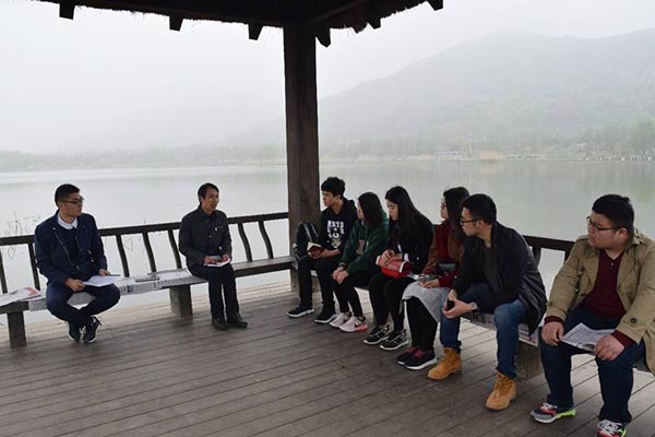 大家本着低碳出行的理念,一人一辆共享单车前往学校附近的长广溪湿地公园,一边交流实习中的各种经历,一边感受春天的气息。到达目的地后,辅导员徐锋老师简要地向党员同志们介绍了本次户外活动的目的和意义,带领党员同志重温党章,特别是党员条件、党员的权利和义务、入党誓词等。各位学生预备党员针对2016年里各项学习、工作、思想等进行了自我评价,大家相互指出对方存在的不足,并给出了中肯的建议。批评与自我批评使大家明确了自身存在的问题,找准了下一步继续努力的方向。