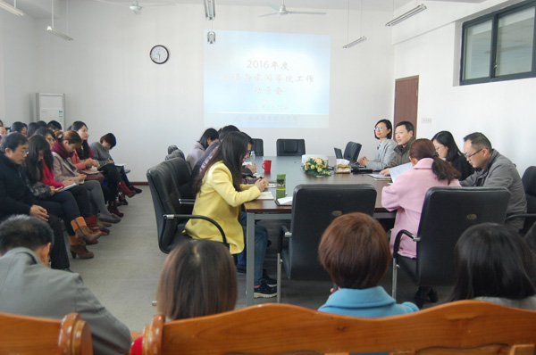杨丽院长简要回顾了外语与旅游学院2015年度主要工作、取得的成绩和存在的问题,总结了寒假期间围绕学校“十三五”发展规划稿第二轮修改工作,传达了学校领导干部培训会和教(工)代会精神,在此基础上提出了分院2016年度工作主题,即“特色发展、突出服务、升级内涵、和谐幸福”,厘清师资队伍建设、高水平教科研成果、专业、专业群建设、中外合作项目拓展、信息化教学、技能大赛等方面的发展思路和目标。
