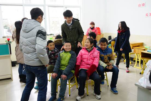 1月6日下午,虽然寒凝大地,但无锡市南长区培智学校的教室里却暖意浓浓。来自艺术设计系的53名师生志愿者,正在这里向100多名智障儿童赠送水彩笔、七巧板、巧克力等礼品,并和小朋友们一起唱歌、做游戏、捏橡皮泥,给这些特殊孩子送去了一片爱心和温暖。