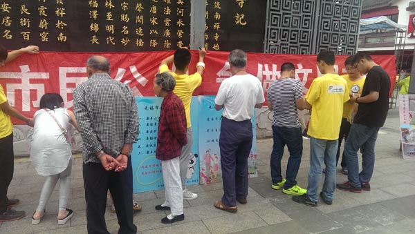 活动过程中,控制学院师生的热情呼吁吸引了很多的市民。在精心制作的宣传展板前,留下众多驻足观看的身影,他们把《无锡市民文明公约》和《无锡市民行为准则》牢记在心;在八米的宣传横幅上,留下了数百市民的签名,他们把参与文明创建的心意表明;调查问卷上积累了众多热心市民对文明的理解和对文明现状的评价以及城市文明创建的意见和建议。活动开展两天以来,已回收问卷200多份,征得意见和建议数十条,拍摄图片数百张。活动后期将形成城市文明随拍图片展,并将问卷调查结果及征集的意见和建议形成议案提交市文明办。(郑月圆)
