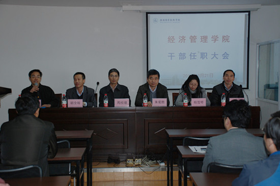 3月21日,经济管理学院在中桥校区第一会议室召开干部任职大会。校党委书记朱爱胜、副校长周桂瑾、组织部部长杨雪琴及经管学院中层干部、高级职称人员、博士、党支部书记等30余人出席了会议。