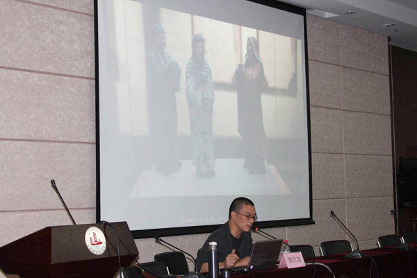 贺文忠通过介绍他游历各地时拍摄的泥人照片,向到场的100多名师生展示了泥人的制作艺术和不同时期风格迥异的泥人造型,还结合自身经历,用系列图片展示了紫砂壶工艺制作的详细过程。贺文忠还展示了部分学生作品并进行点评,使听众对泥人和紫砂两种民间艺术有了更为直观的印象。