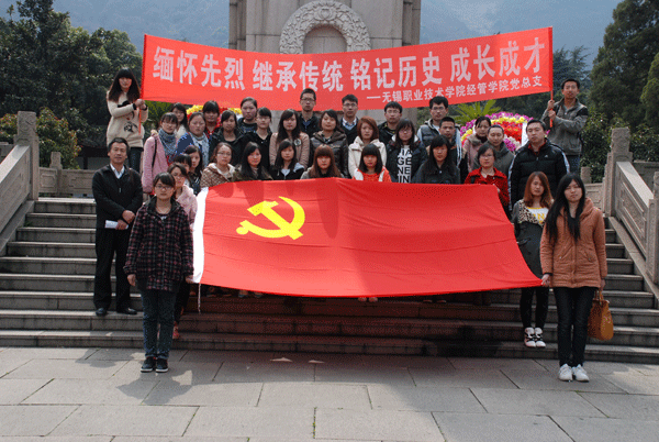 同学们怀着无限崇敬的心情向“为国牺牲人民英雄纪念塔”敬献花圈,并深深默哀三分钟以表达对革命烈士的缅怀和敬意。胡全裕书记号召学生党员以先烈为榜样,胸怀时代,先人后己,无私奉献,树立远大的理想和抱负,申世外代表学生党员宣读了祭文,号召大家珍惜幸福生活、继承先烈遗志、努力奋发进取、为祖国的建设贡献自己的力量。同学们还参观了陵园,进一步了解先烈们的革命事迹。仪式结束后,学生党员分为2组,一组帮助烈士陵园进行了大扫除,一组在会议室召开了“学生党员如何以实际行动成长成才”的主题研讨会。