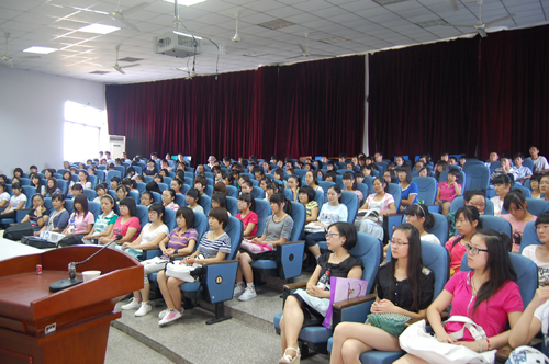 9月14日,外语系在J4-102举行2011级新生开学典礼,外语系党总支书记江铭、系主任曹成志、辅导员和各新生班班主任参加了典礼。