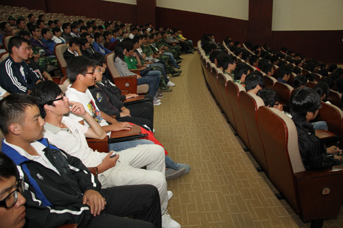 9月22日晚,国际交流中心一楼报告厅时而鸦雀无声,时而爆发出热烈的掌声,这是汽车系2011级新生300余人在听取系学生党员宣讲团五位成员宣讲的情景。