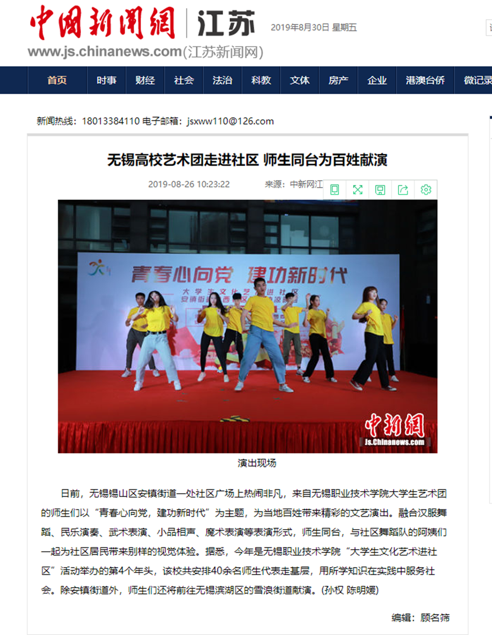 【中新网】无锡高校艺术团走进社区 师生同台为百姓献演