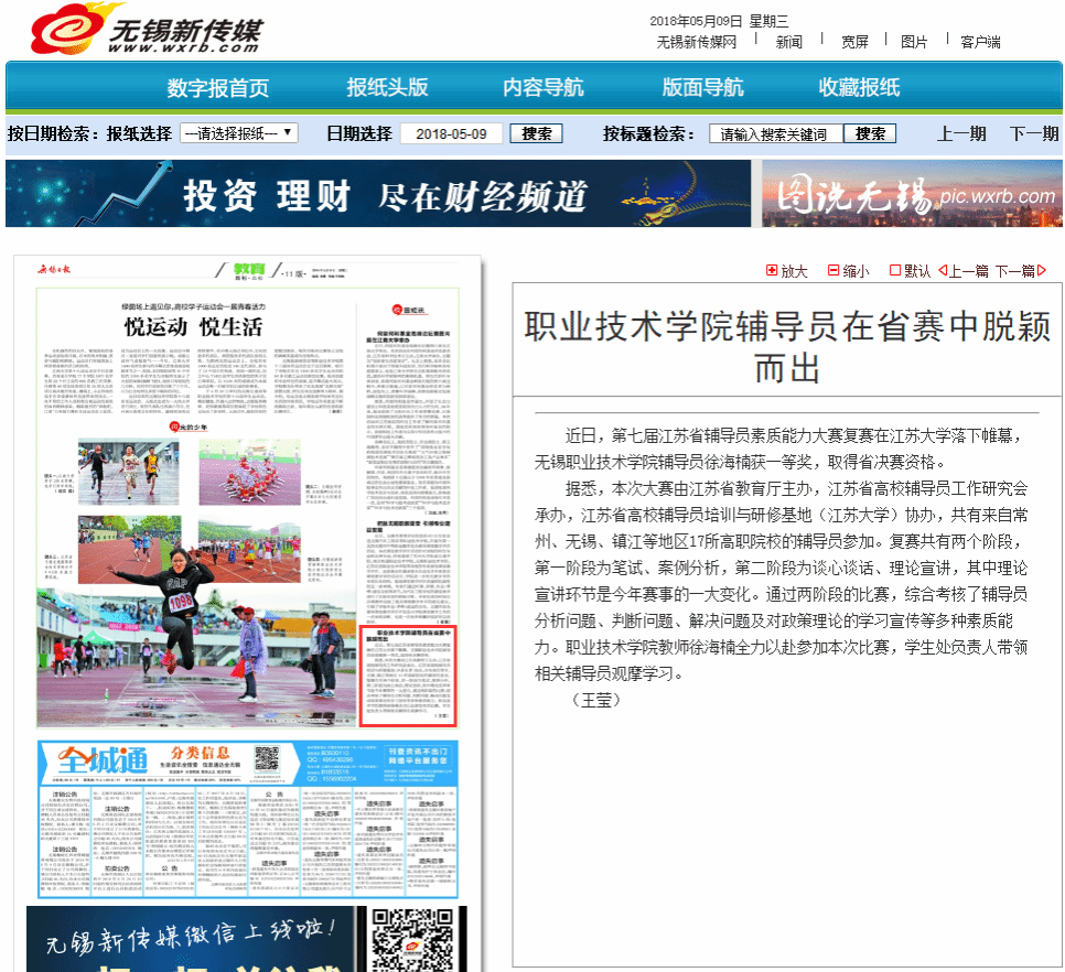 【无锡日报】职业技术学院辅导员在省赛中脱颖而出